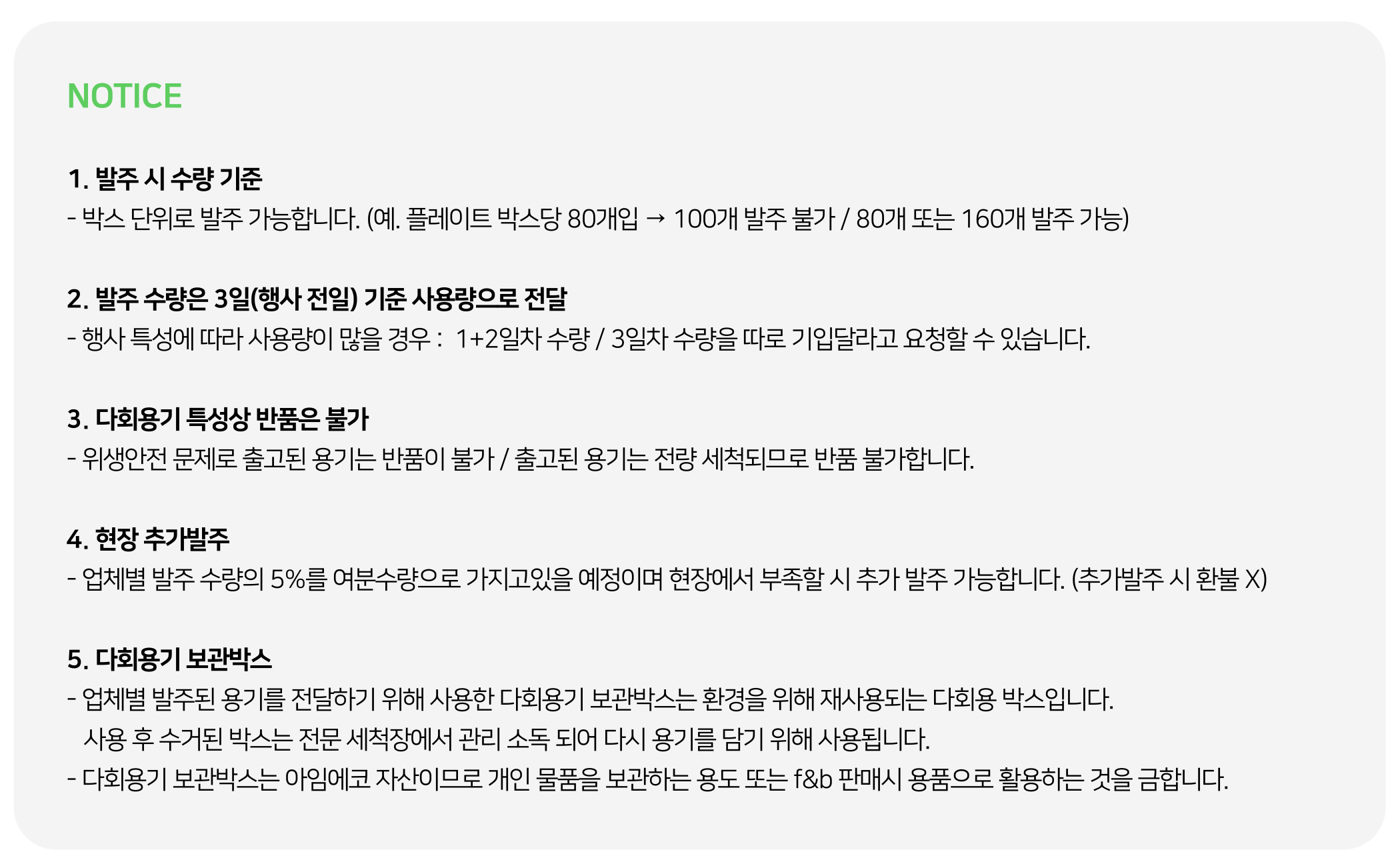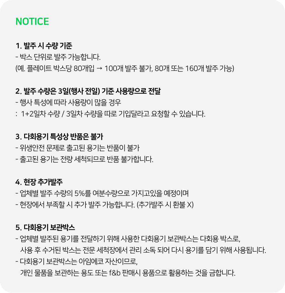 부스명과 필요한 다회용기를 주문해주세요!